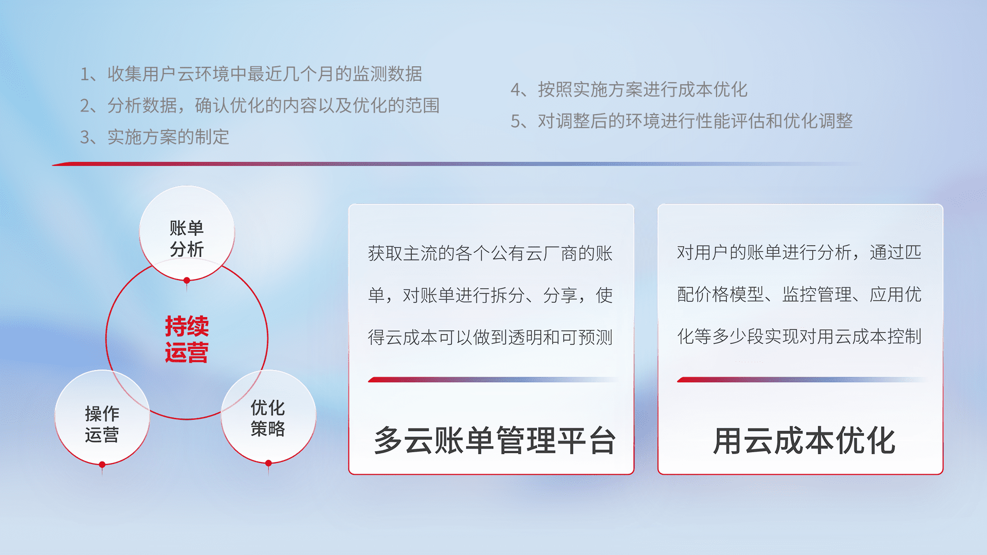 运用智能化工具分析云资源,,提供日常费用可视化工具,,自动账单拆分,,成本优化云上费用,,,降本增效。。
